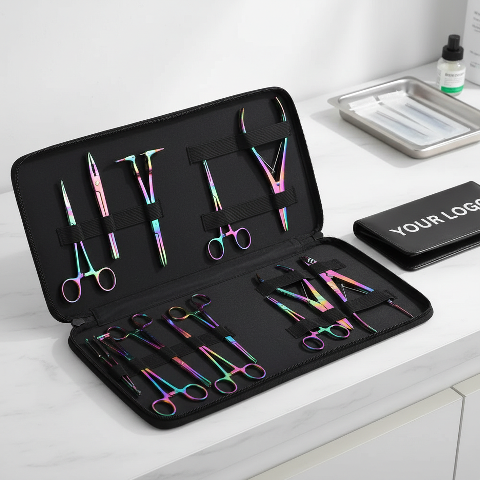 Kit de Herramientas de Perforación Corporal de Acero Inoxidable de 8 Piezas, Personalizado, de Alta Calidad, Duradero, con Estuche Profesional para Perforar Orejas, Nariz y Pezones