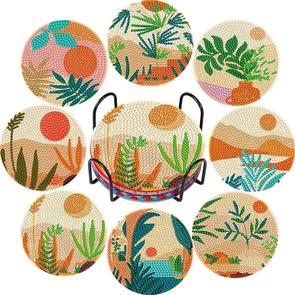Kit de Arte de Diamantes DIY Abstracto Personalizado, Posavasos de Pintura de Diamantes con Diseño de Bruja de Halloween Impreso con Logotipo para Fiestas y Eventos