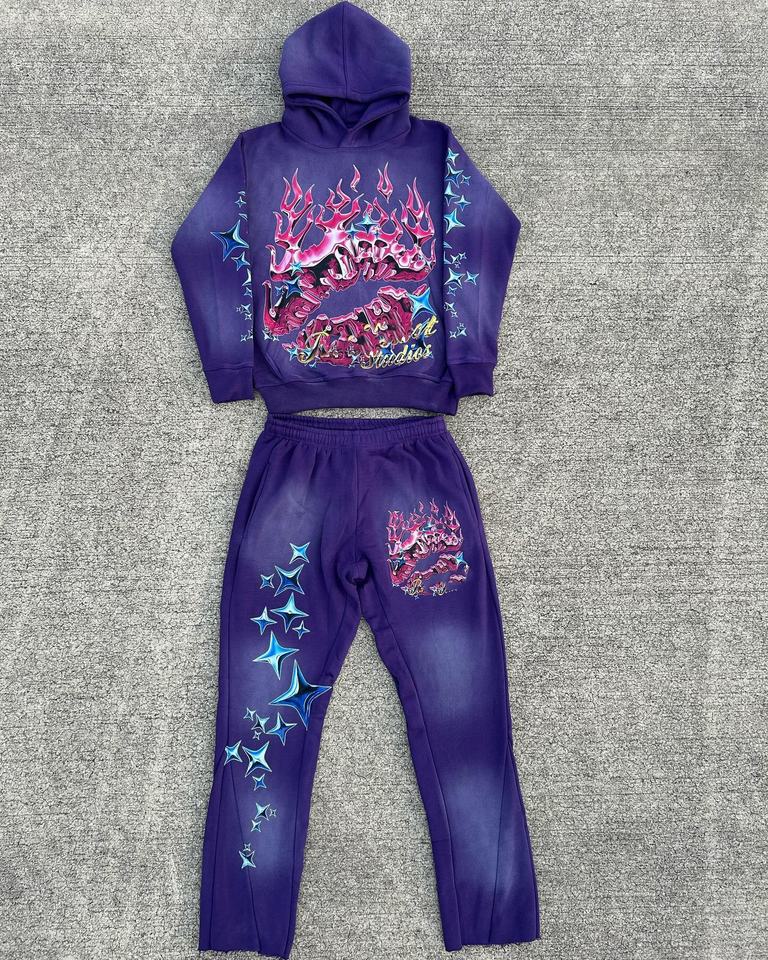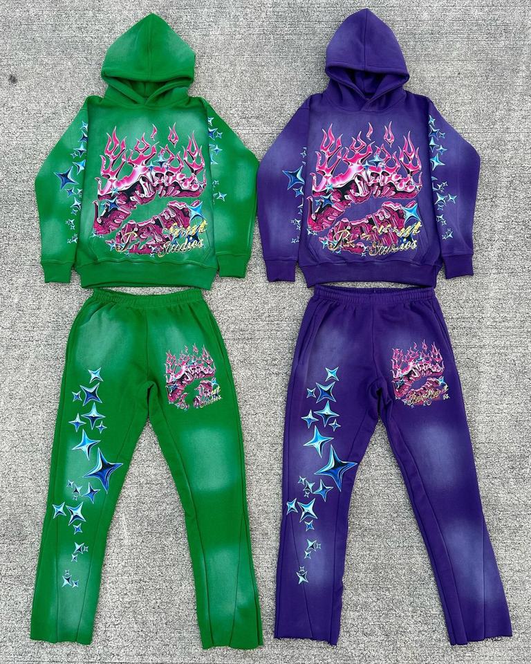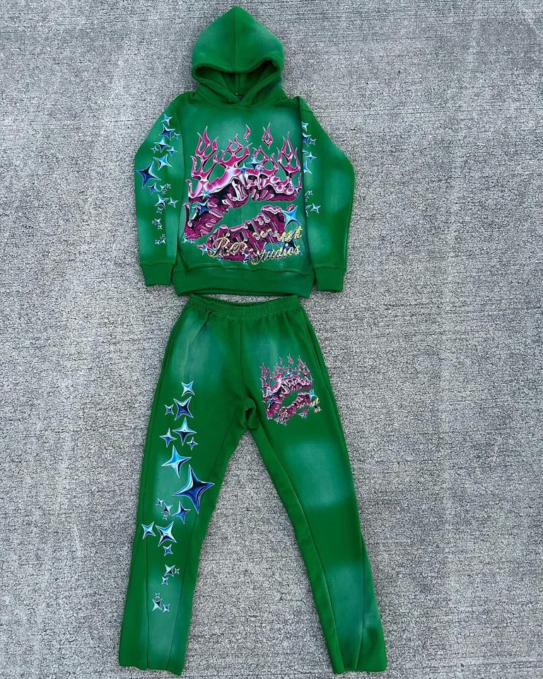 Conjunto de Sudadera y Pantalones Acampanados Vintage con Lavado Ácido Personalizado, Estampado Digital Ecológico, Tallas Grandes, Estilo Hip Hop, Ideal para Invierno