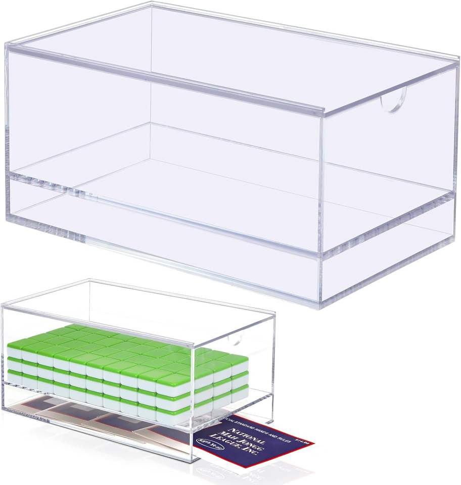 Caja de Mahjong de Acrílico Personalizada, Organizador de Almacenamiento Apilable Transparente con Tapa para Fichas de Juego, Organización del Hogar