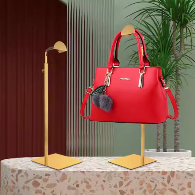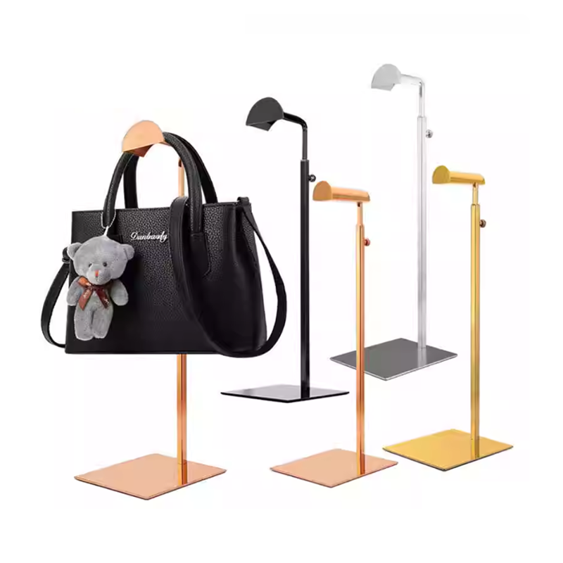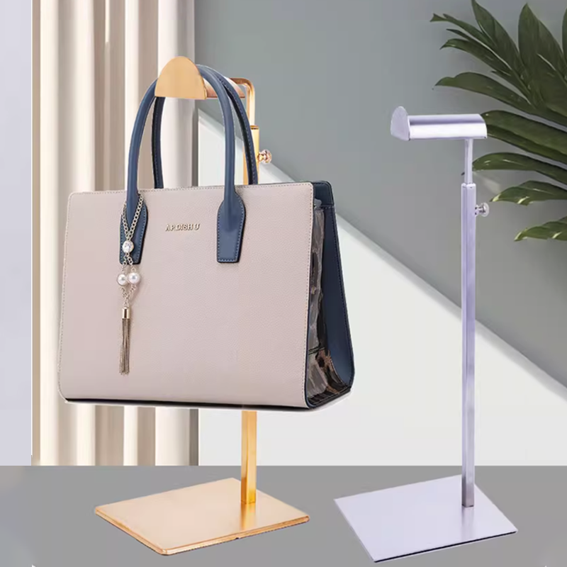 Soporte de bolsa de metal de altura ajustable personalizado estante de bolsa de mano collar en forma de T soporte de exhibición de encimera para tienda