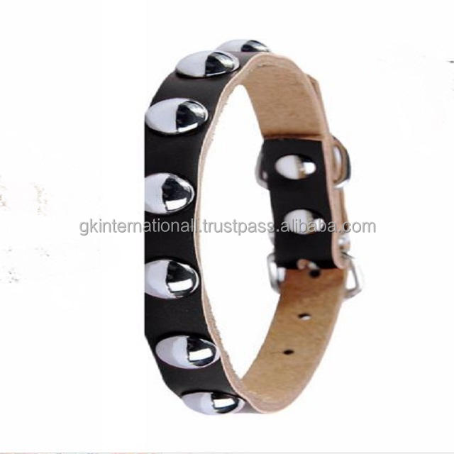 Collar de cuero con tachuelas para perro, remache ajustable personalizado, hecho a mano, de cuero cromado, elegante