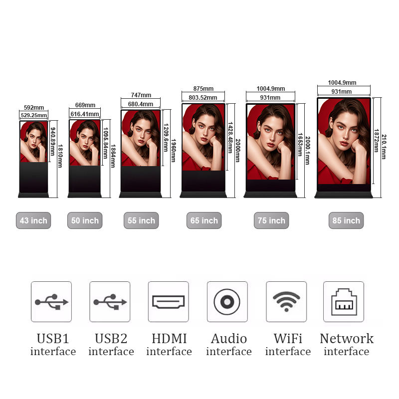 Tamaño de Pantalla:43/50/55/65/75/85 Pulgadas (Opción)
