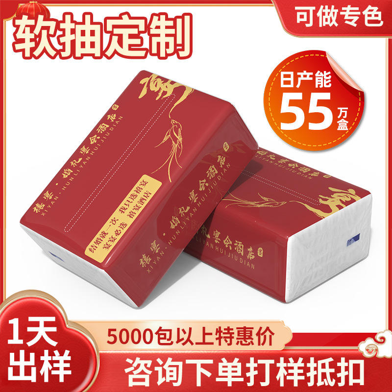 Caja de pañuelos publicitaria personalizada de 2 capas, pulpa de madera virgen suave con impresión de logotipo para gasolineras