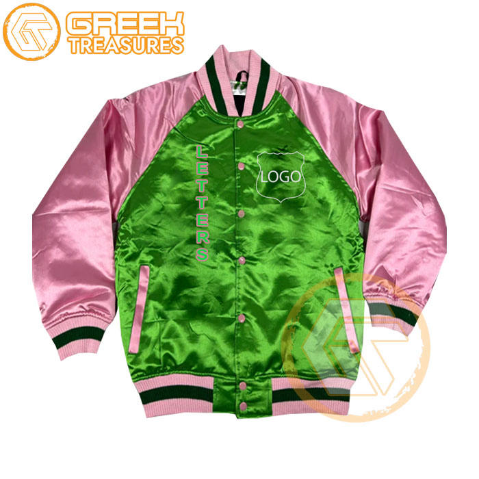 Personalizado Alpha | Kapa Satén Bordado Varsity Jacket Sorority Alta calidad Transpirable Griega Apparels Alpha Mujeres Chaquetas
