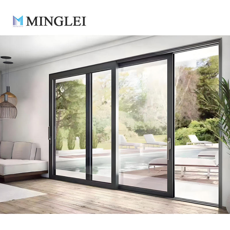 Puerta Corredera de Aluminio Personalizada para Terraza, Ventanas y Puertas de Vidrio Templado Doble con Riel, Puerta Corredera en Venta