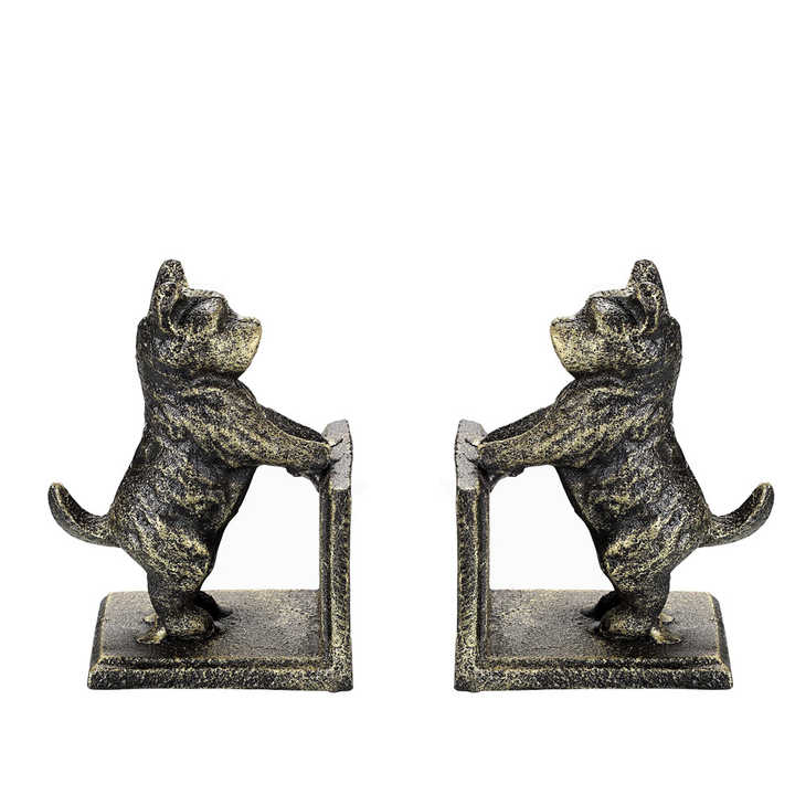 Sujetalibros de perros juguetones de hierro fundido antiguo personalizado