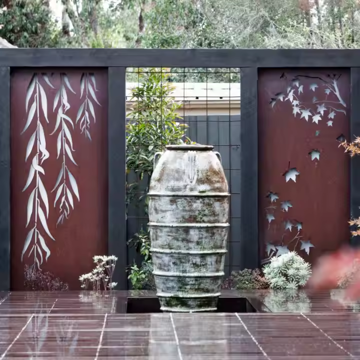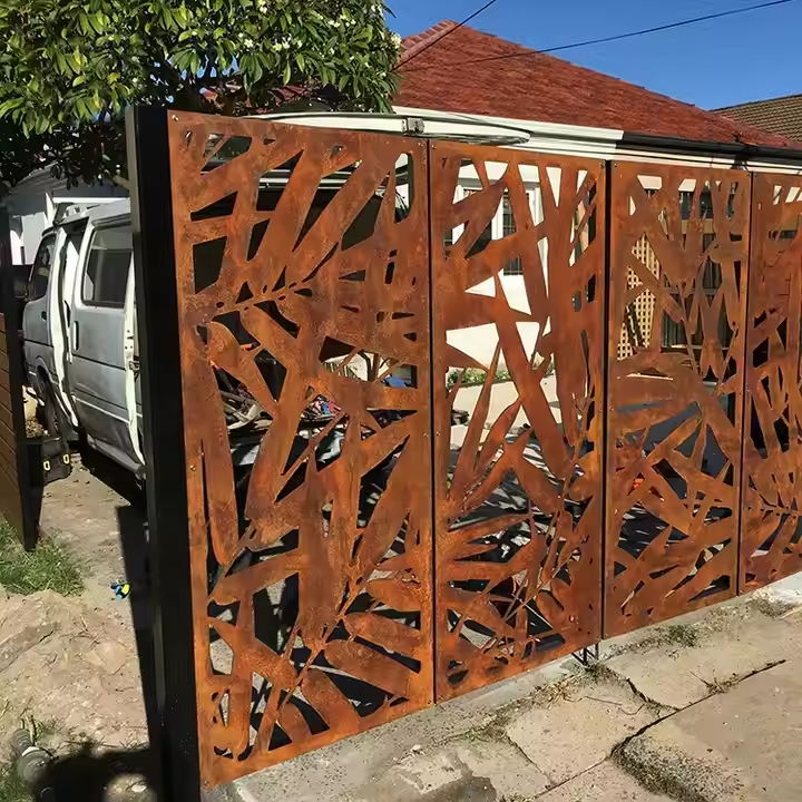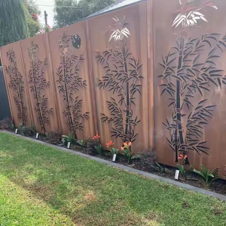 Pantalla de Privacidad con Diseño Art Deco Personalizado, Corte Láser, Paneles de Acero Corten para Mayor Privacidad