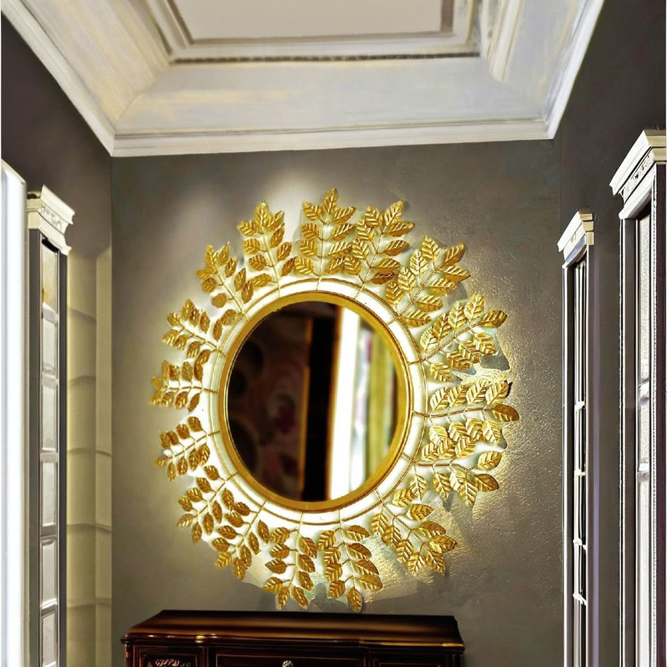Espejo de Pared Metálico con Diseño Art Deco de Hojas Doradas para Decoración del Hogar, Bodas, Sala de Estar, Dormitorio, Pasillo