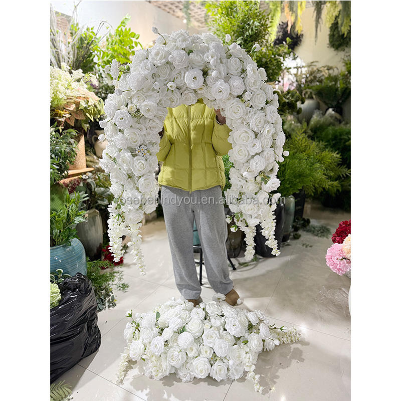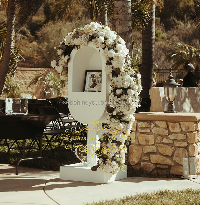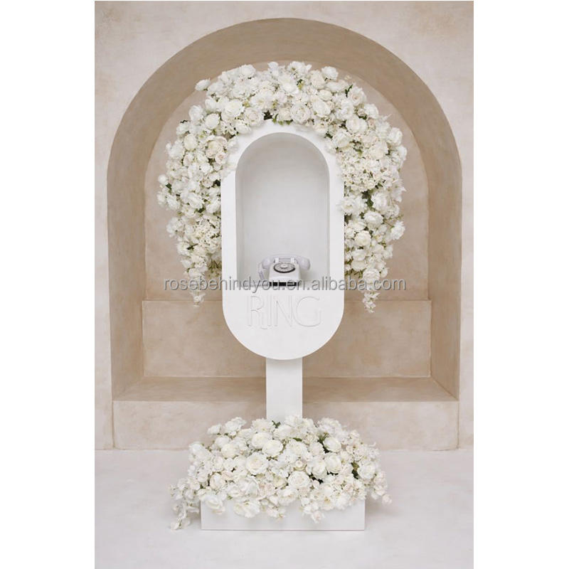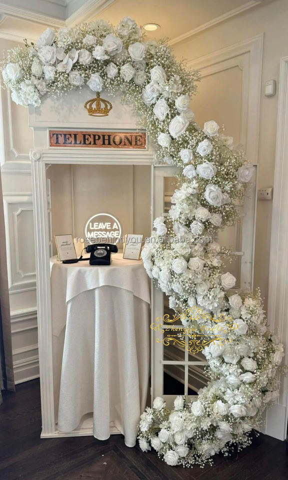 Arreglo Floral Personalizado de Rosas Blancas Artificiales para Cabina Telefónica, Arco de Flores para Libro de Visitas de Boda