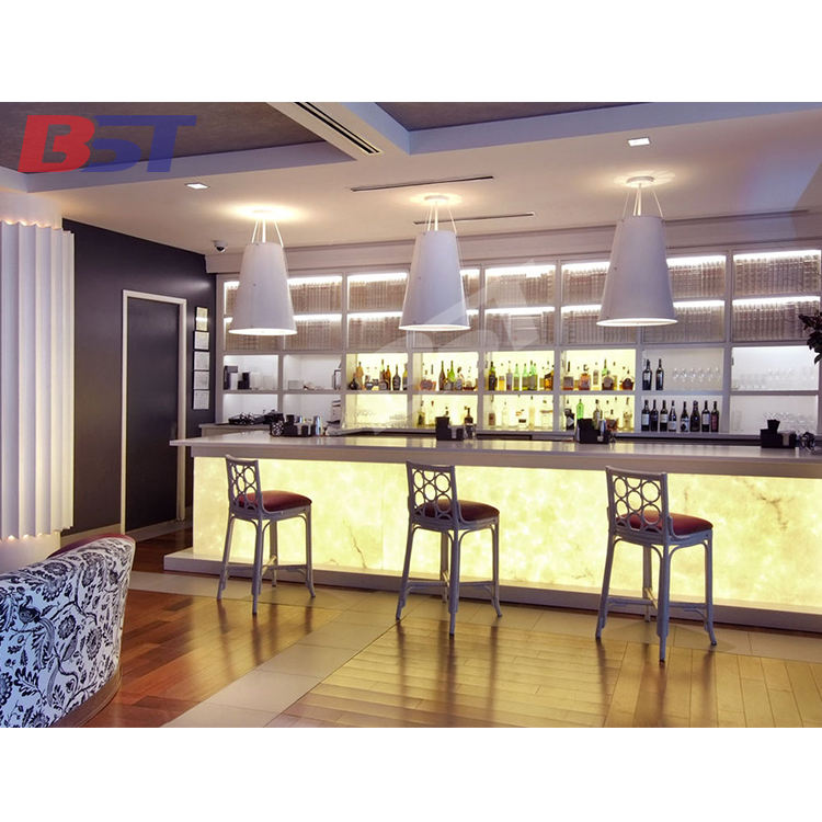 Mostrador de Bar Personalizado de Mármol Translúcido de Ágata Ónix con Retroiluminación LED, Resistente a los Arañazos, Moderno, para Hoteles, Centros Comerciales, Gimnasios