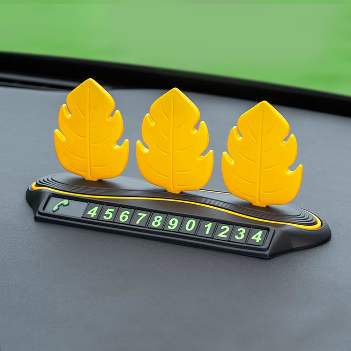 Kits de Interior de coche de dibujos animados de hoja de árbol de simulación de PVC OEM Baviss personalizados, placa de matrícula de estacionamiento temporal, accesorios interiores