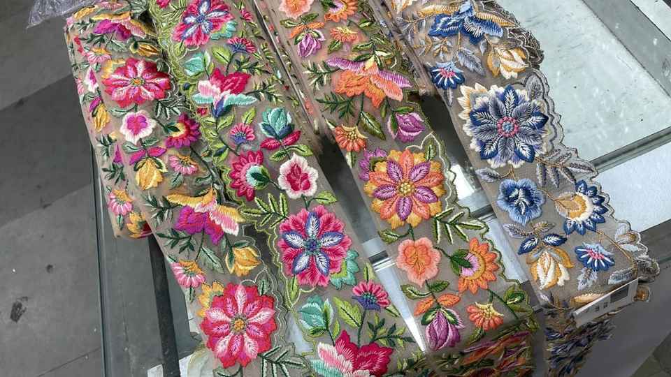Colores pastel personalizados con bordado floral, lentejuelas incrustadas, para diseñadores de ropa, 4 colores