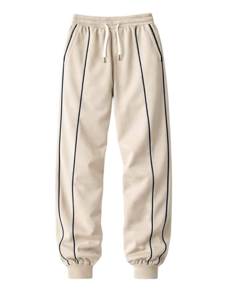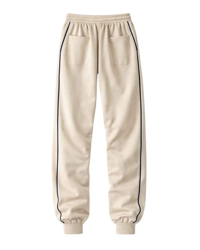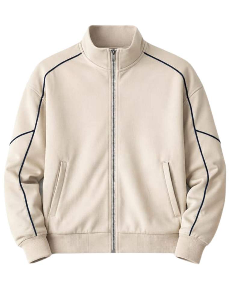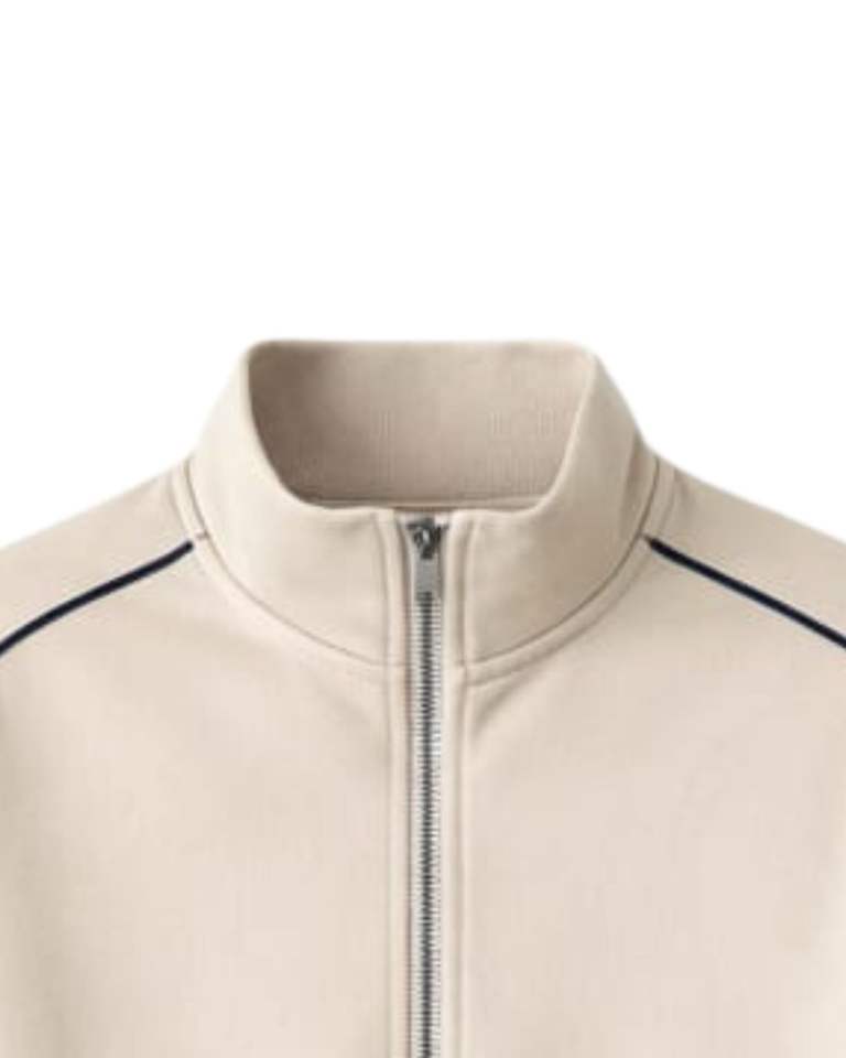 Conjunto Deportivo Personalizado para Hombre en Color Beige con Cierre, Fabricante de Ropa Deportiva, Traje para Correr con Ribete en Contraste, Ropa Casual para Gimnasio