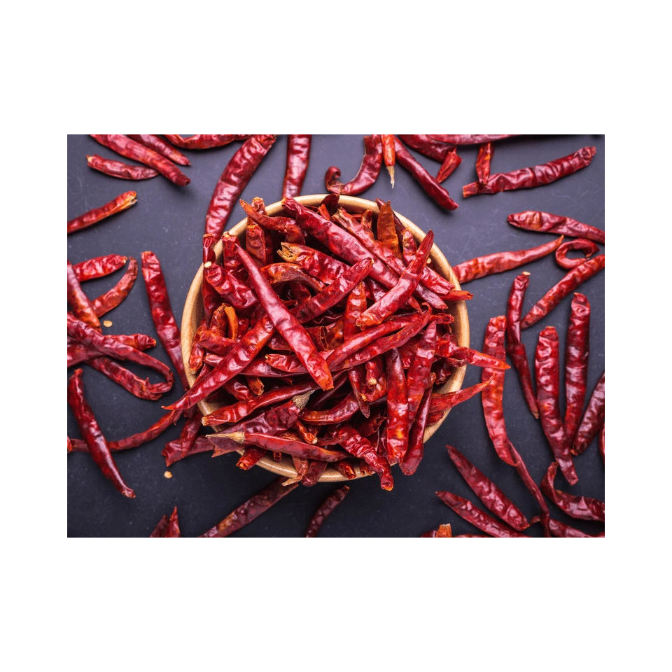 Chiles Rojos Secos Enteros Crudos de Grado Alimenticio, Aroma Intenso y Sabor Rico, 25 KG a Granel de la India