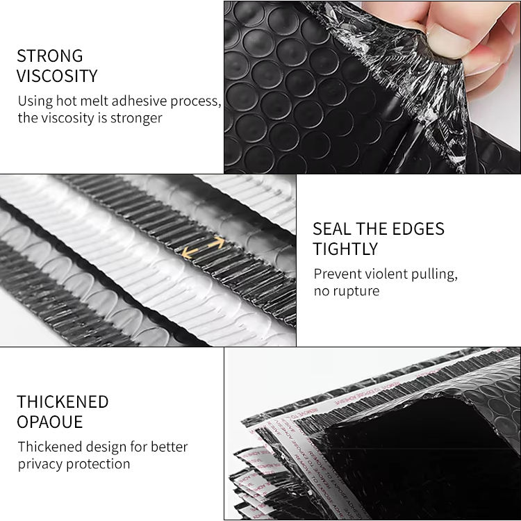 Bolsa de correo de transporte de burbujas de polietileno con autosellado negro mate personalizada, sobre de espuma para pequeñas empresas, bolsas de correo pequeñas de aire llenas