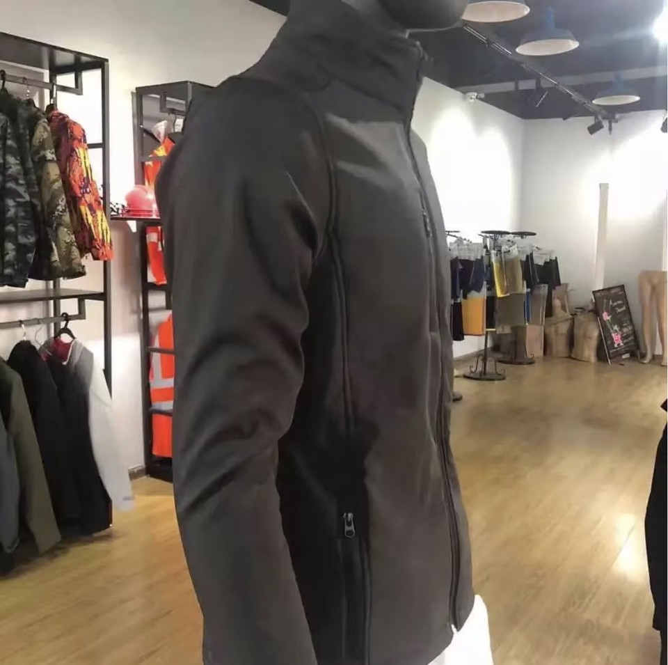 Chaqueta Softshell Negra Personalizada para Hombre con Cuello Alto, Venta de Fábrica Profesional, Colocación de Logotipo Frontal