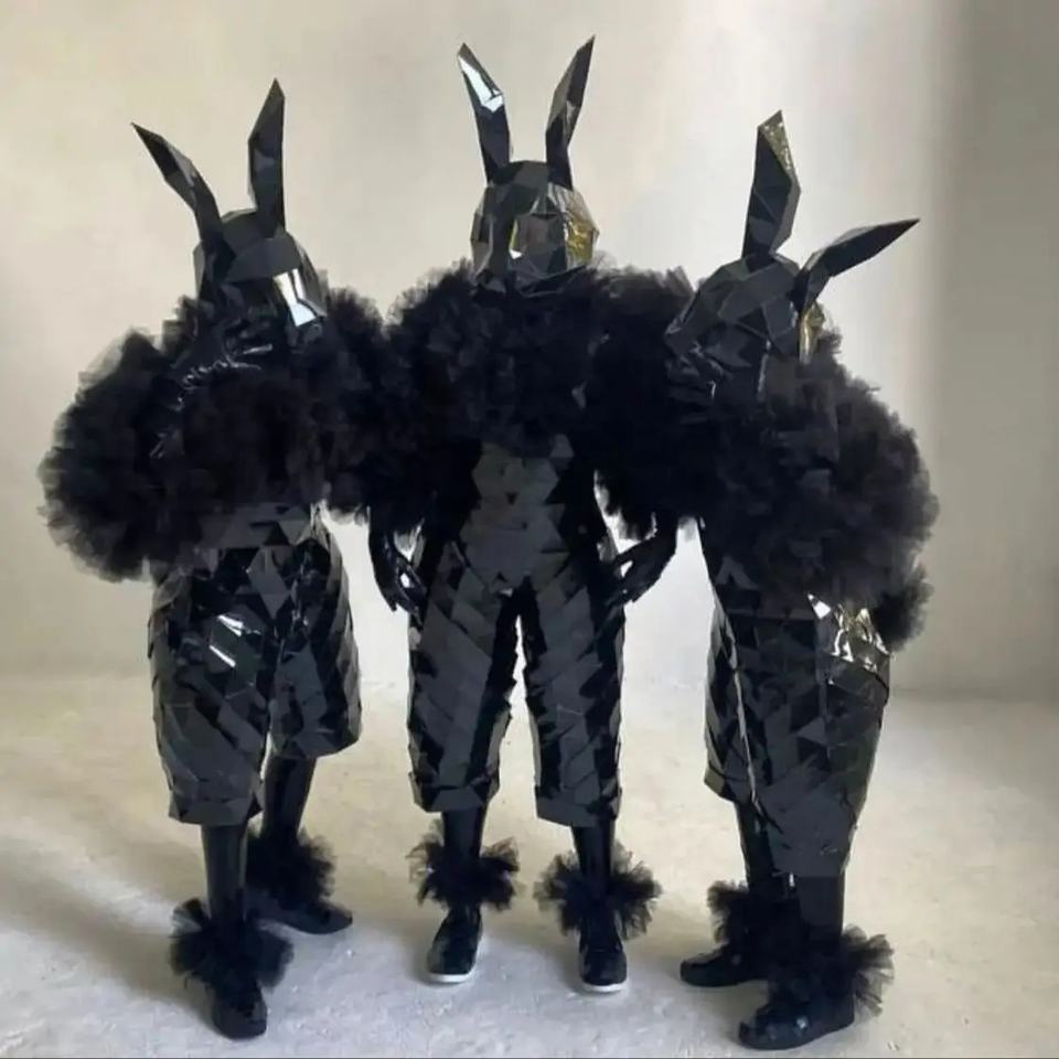 Traje de conejo de espejo negro personalizado, disfraz de actuación de escenario de Carnaval, disfraz de Club de Halloween, disfraz de tela, gafas, Robot