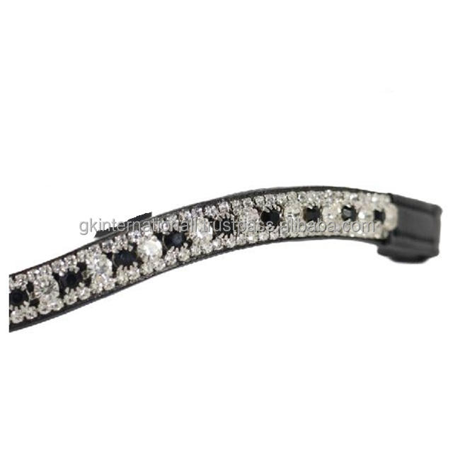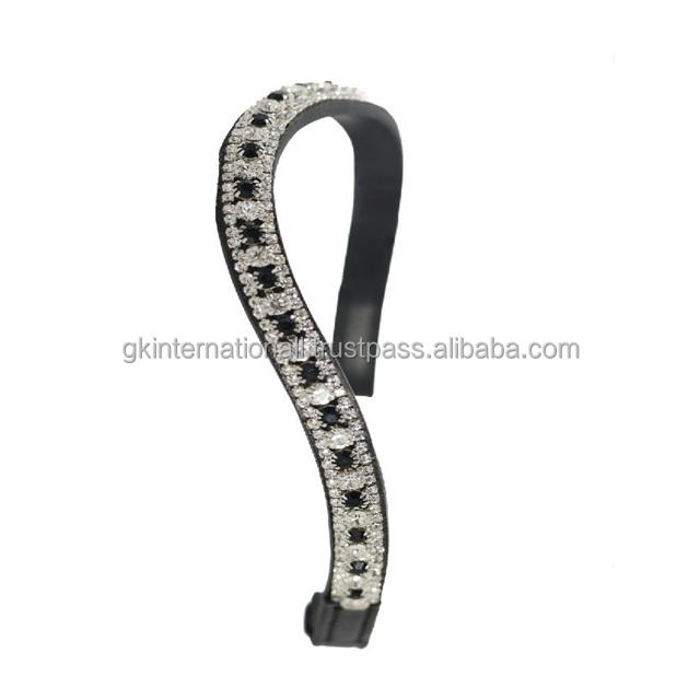 Diamantes de imitación de cristales brillantes en blanco y negro personalizados, forma de onda decorativa, banda de cuero negro para cejas de caballo en tamaños completos de mazorca