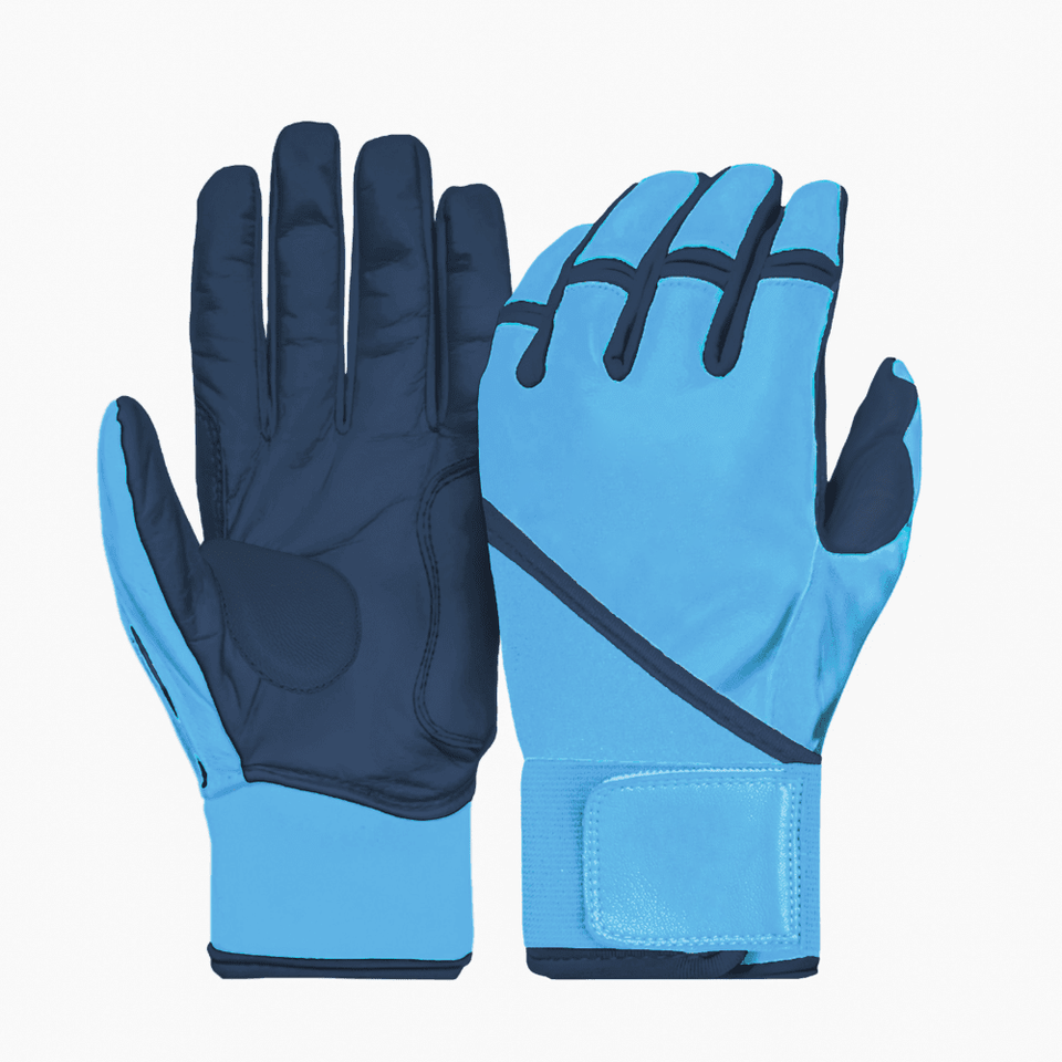 Guantes de Bateo de Béisbol Profesionales de Cuero Vacuno Azul Personalizados, con Puño Largo, Transpirables, Duraderos, Disponibles al por Mayor