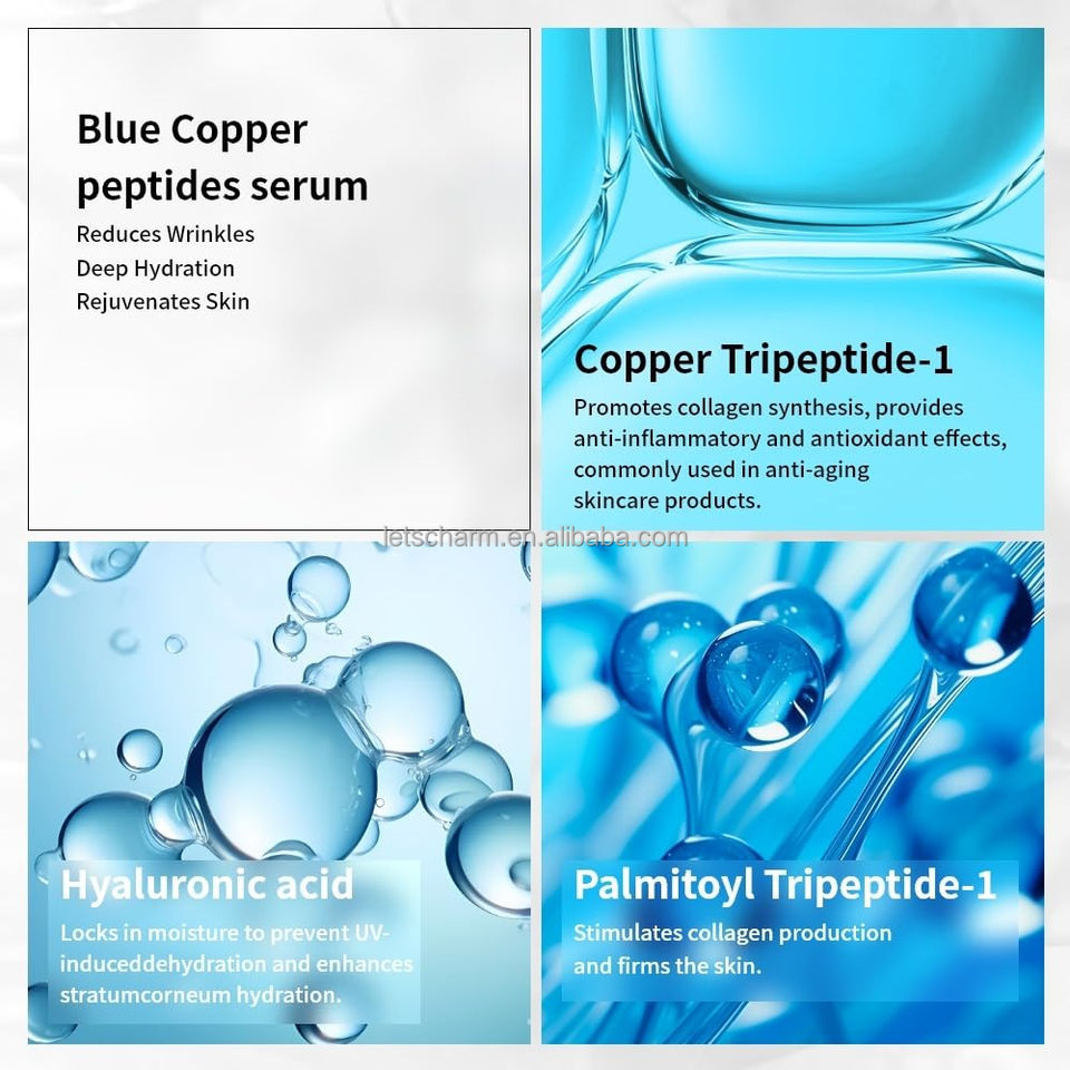 Esencia de Péptidos de Cobre Azul Personalizada 30ml - Antienvejecimiento con GHK-Cu y 12 Péptidos para Reafirmar e Hidratar | OEM/ODM