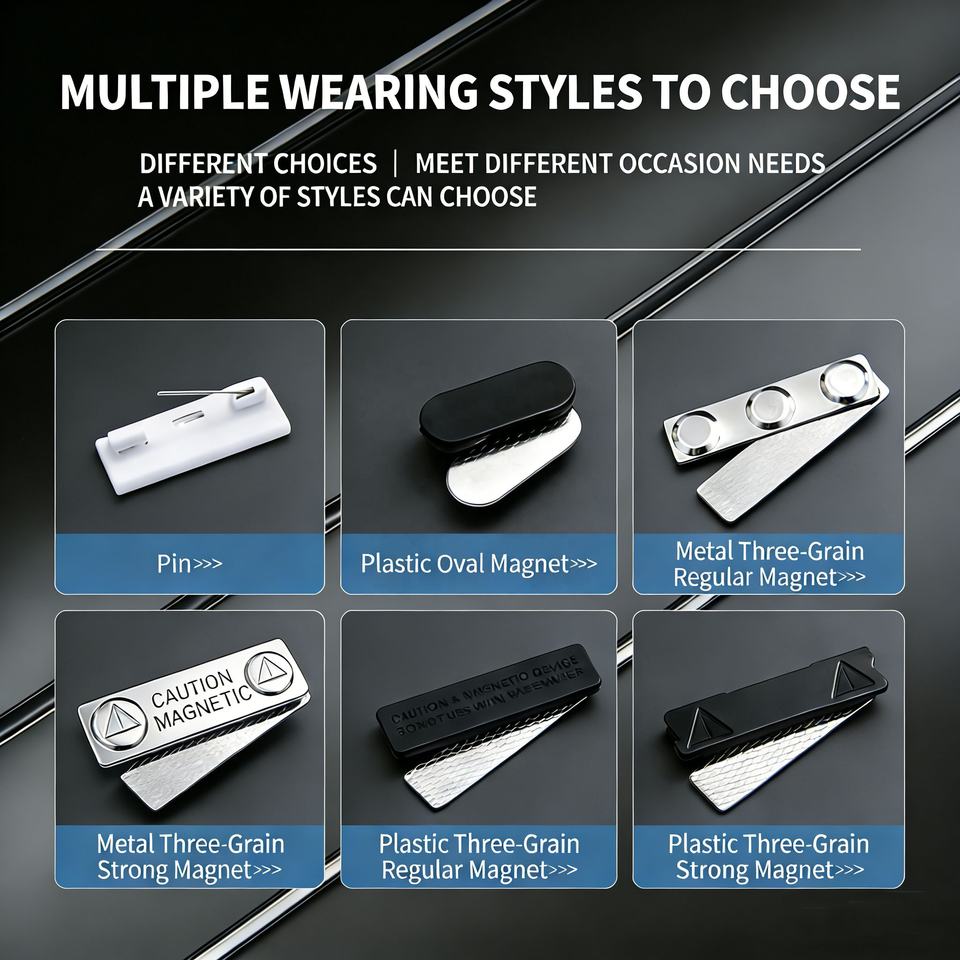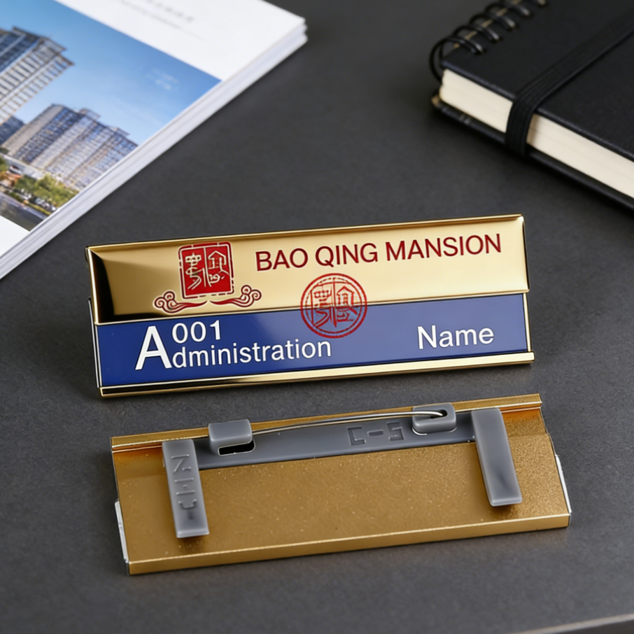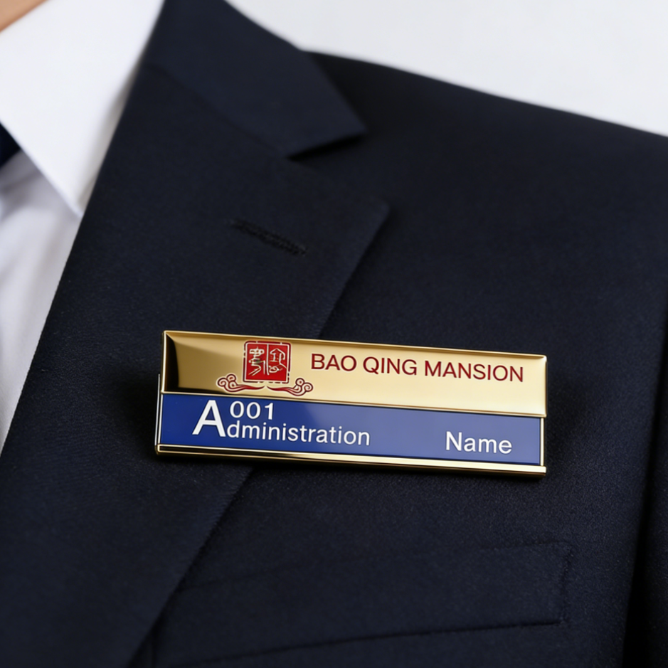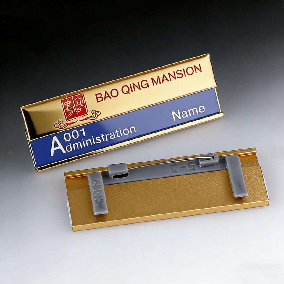 Placa de Identificación Metálica Personalizada con Núcleo Azul y Espacio en Blanco para Nombre, Diseñada para Personal Administrativo