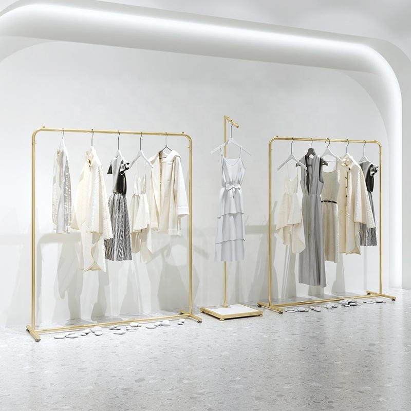 Perchero de Ropa Colgante Dorado Personalizado, Exhibidores de Ropa Metálicos, Estantes de Exhibición de Prendas, Perchero de Pared para Tiendas Minoristas