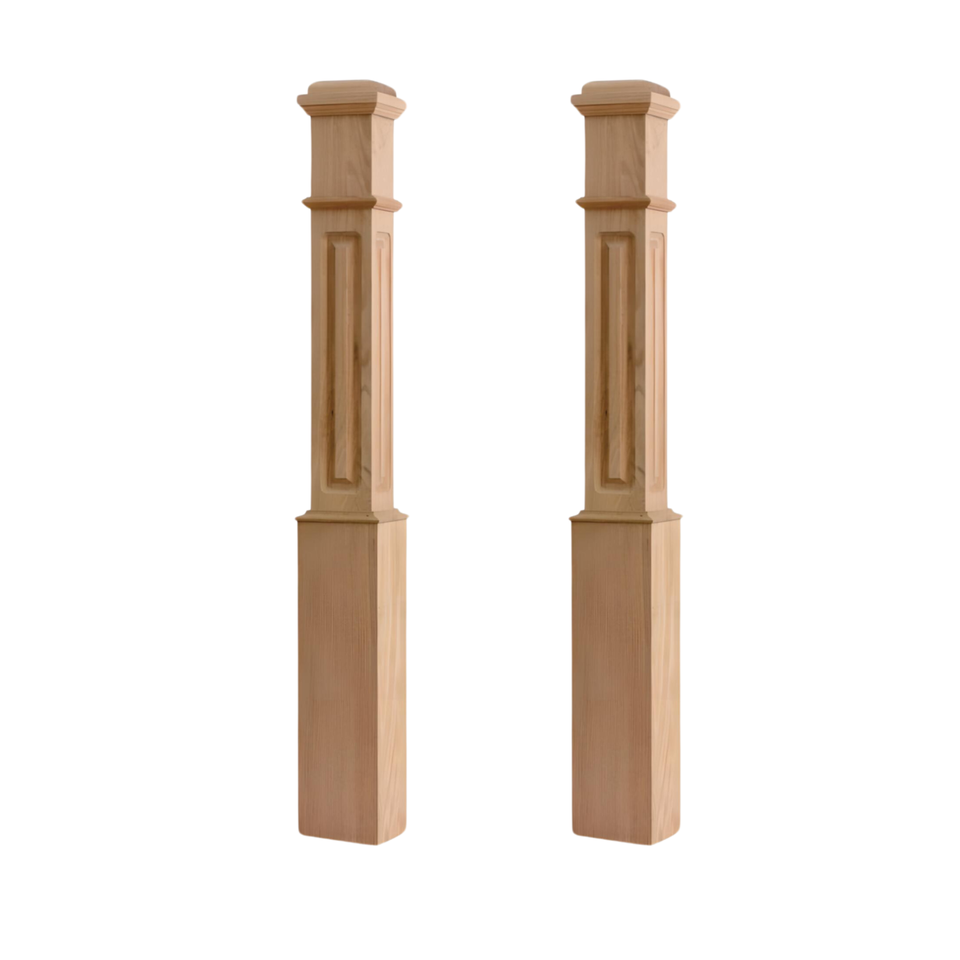 Caja personalizada Newels 4091RP Caja de roble rojo macizo Newel con detalle de panel enrutado Piezas de escalera elegantes para cualquier escalera de EFS