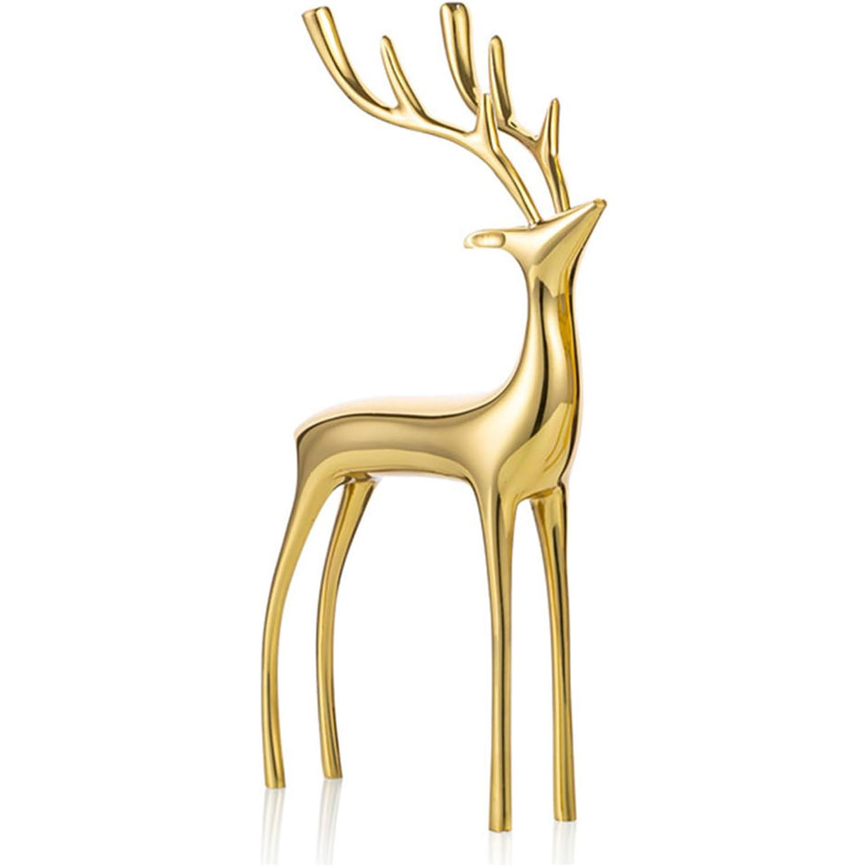 Esculturas de latón personalizadas figuritas de animales de alce dorado estatuas de ciervos de Metal adornos de centro de mesa de Navidad para decoración del hogar