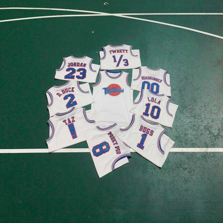 Camisetas de Baloncesto Personalizadas Transpirables de Manga Corta, Space Jam White Tune Squad, Unisex, para Fiestas de Halloween