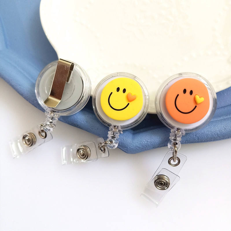 Broche personalizado, insignia acrílica, abalorio retráctil, cara sonriente bonita, dibujos animados, identificación de empleado, insignia, cordón, Clip, broche médico