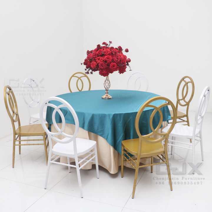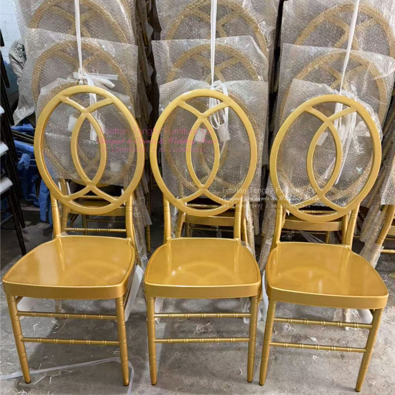 Personalizado a granel gran oferta al aire libre boda apilamiento Metal banquete oro mesa y sillas para eventos