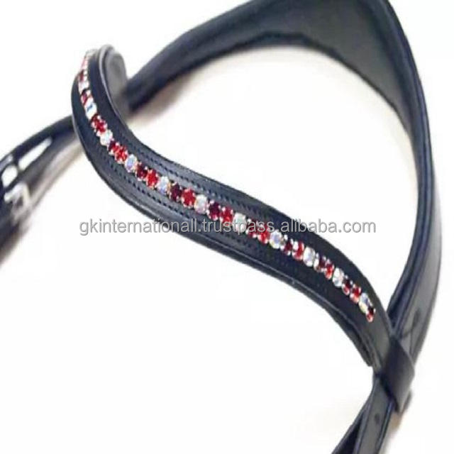 Banda para cejas de caballo de cuero acolchado negro con incrustaciones de cristales AB y Borgoña personalizada en todos los tamaños a precio mayorista
