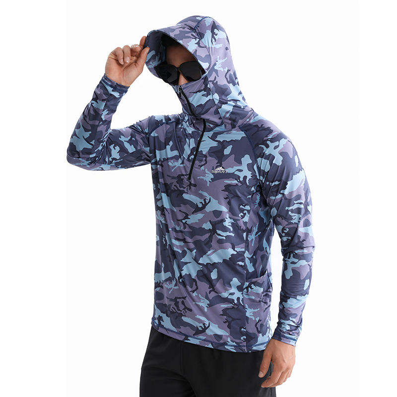 Personalizado Camo serie al aire libre diseño de manga larga cara pesca desgaste protector solar secado rápido camisa Sudadera con capucha