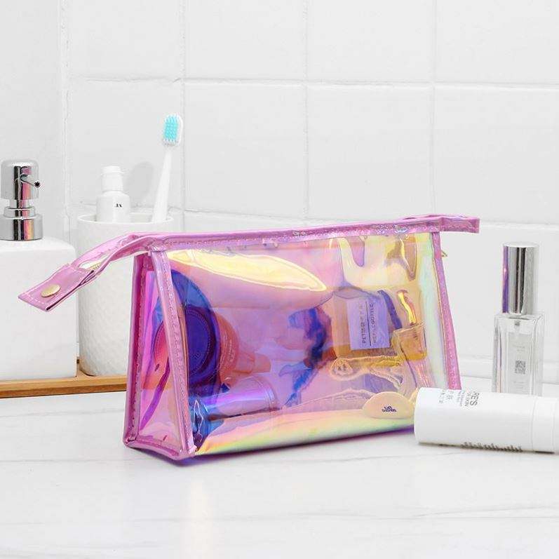 Bolsas de Cosméticos Transparentes de PVC Iridiscente con Cierre de Cremallera y Diseño de Caramelos Personalizado, Impermeables y de Gran Capacidad para Mujer