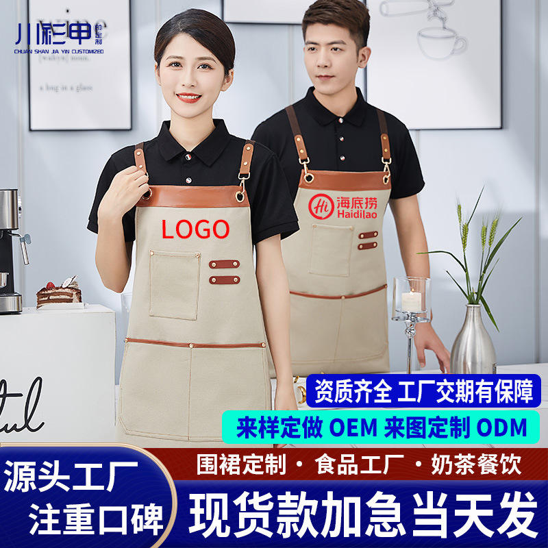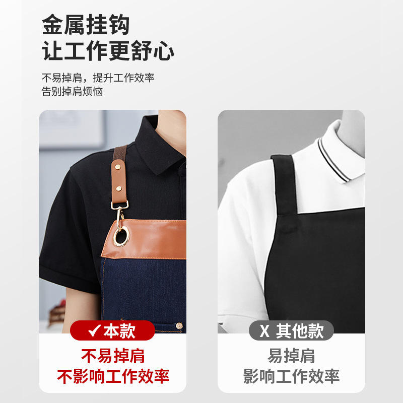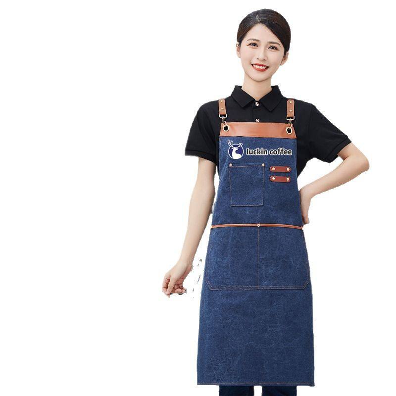 Delantal de lona personalizado azul marino impermeable con correa cruzada para el personal de restaurantes y bares