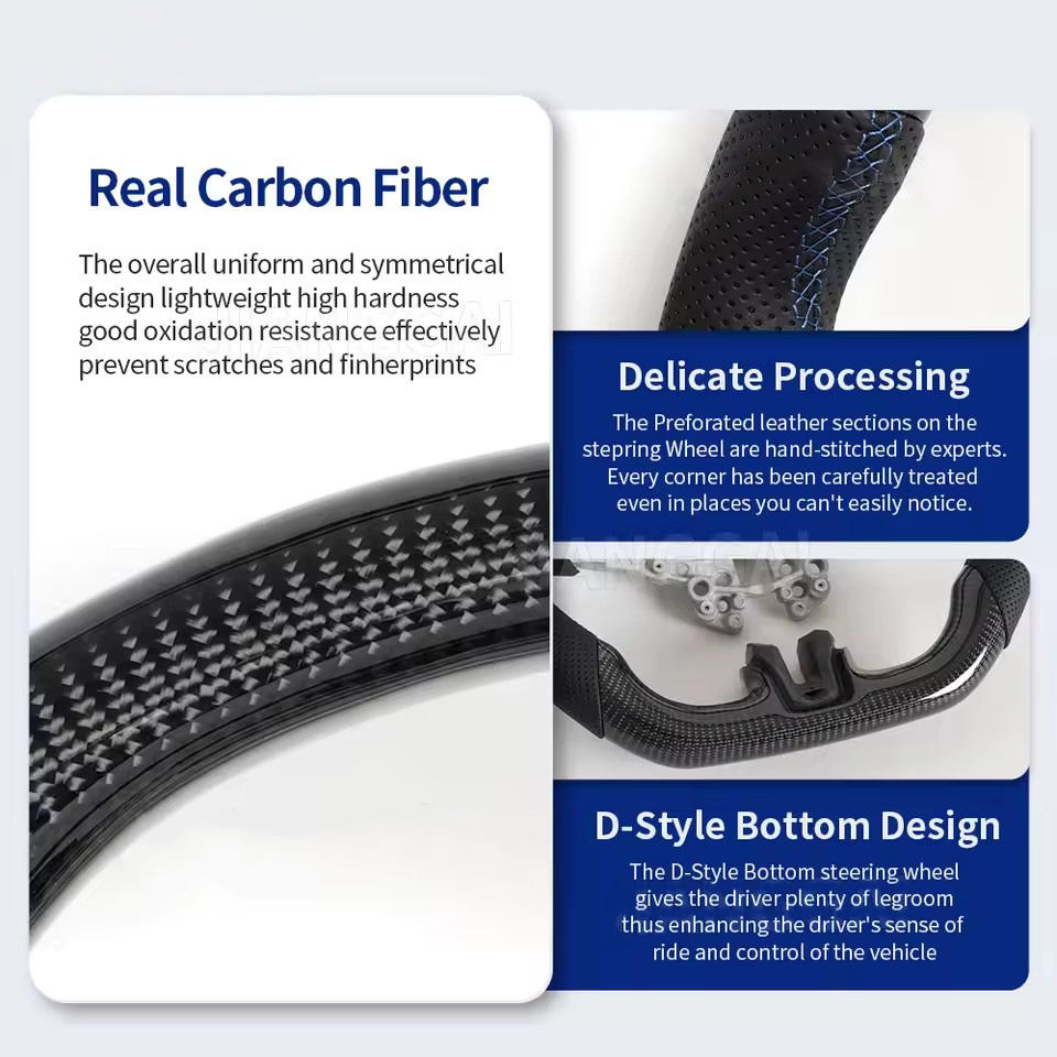 Volante de cuero de fibra de carbono personalizado apto para Ford Mustang 2015 2016 2017 2018 2019 2020 2021 2022 GT Shelby
