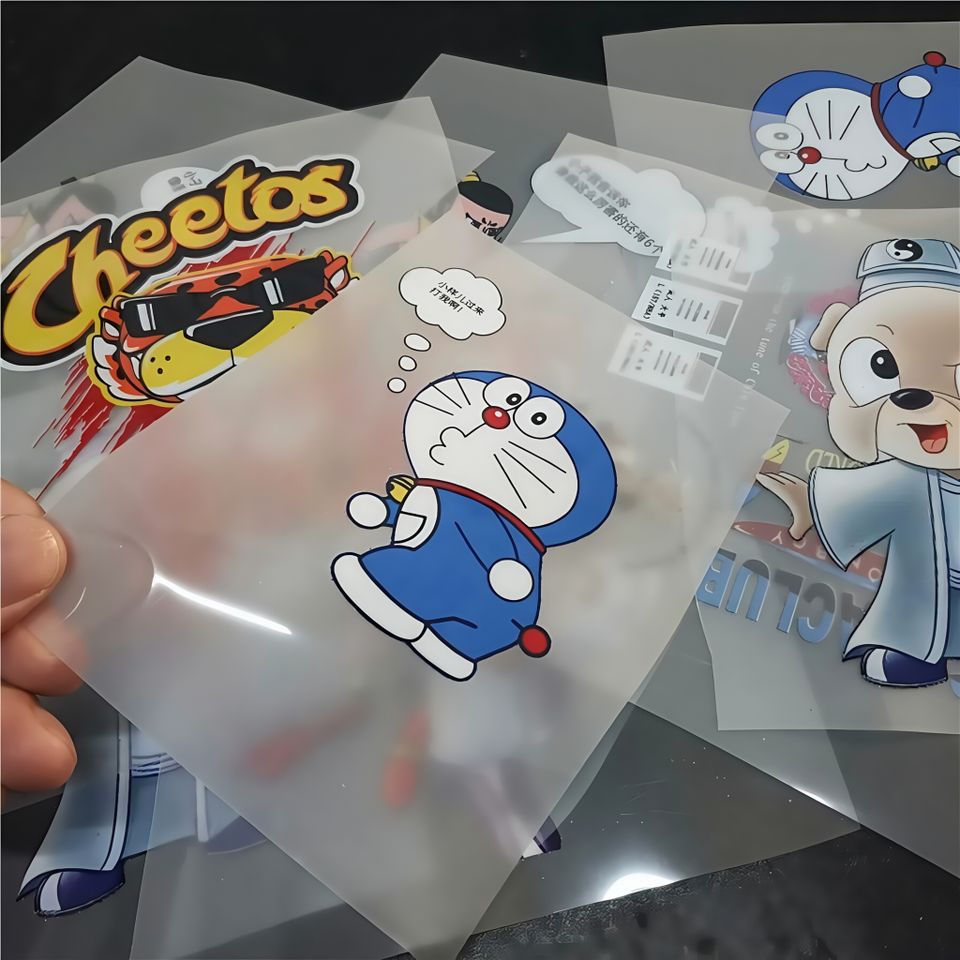 Película de impresión DTF con diseño de dibujos animados personalizado para ropa, película DTF de transferencia de calor para camisetas