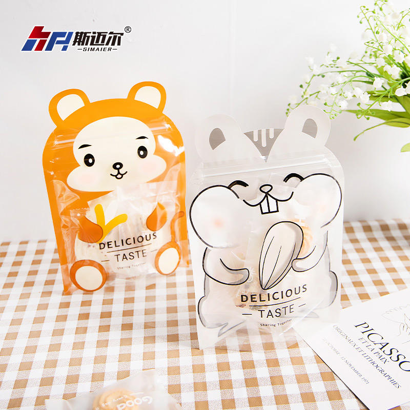 Bolsa Ziplock de dibujos animados personalizada, bolsas de pie con forma especial, galletas, dulces, alimentos, bolsa de embalaje con cremallera y ventana