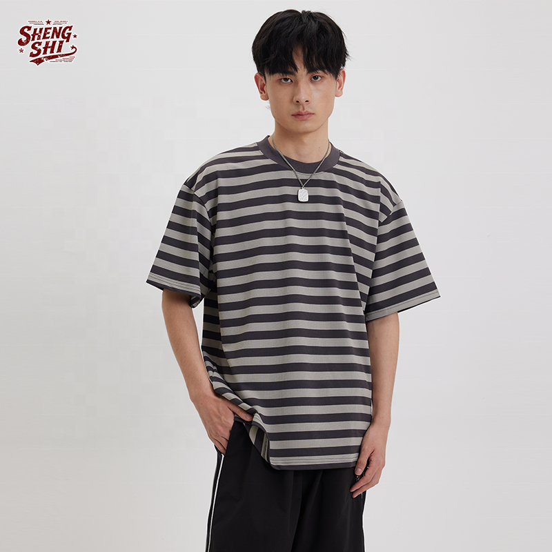 Camiseta Casual Personalizada a Rayas, Estilo Relajado, OEM, 100% Algodón, 250 g/m², Rayas Multicolores, Cuello Redondo, Cómoda, Alta Calidad para Correr