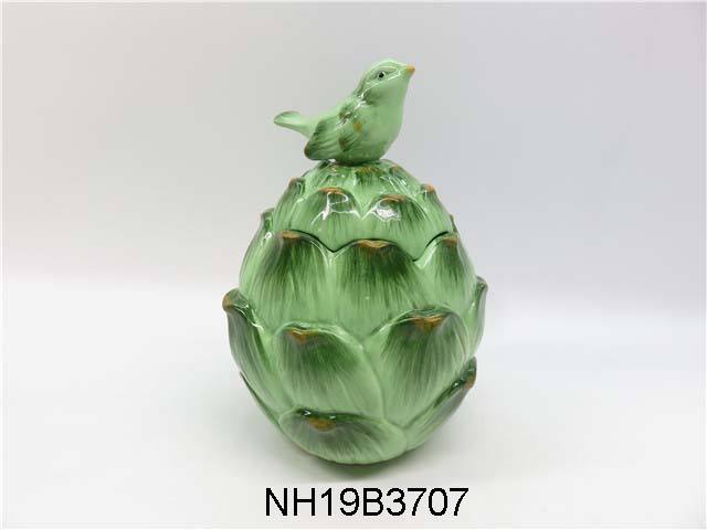 Product Name:Ceramic Globe Artichoke coffee pot with hummingbird on top,Green