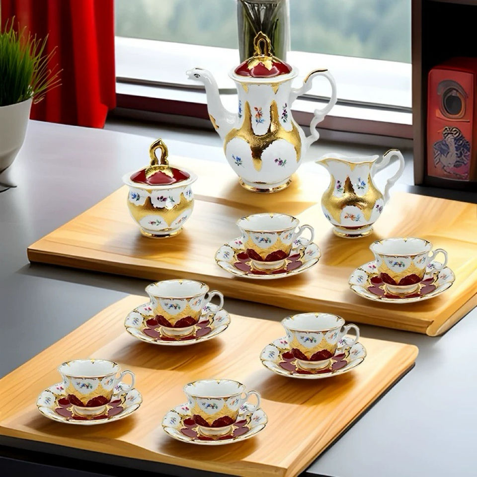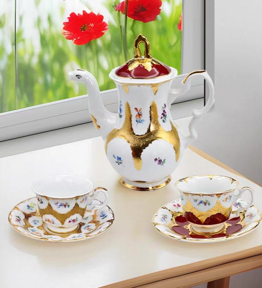 Juegos de Té y Café de Porcelana Fina Personalizados, Tetera Europea de Lujo con Borde Dorado para Regalo de Boda y Cumpleaños