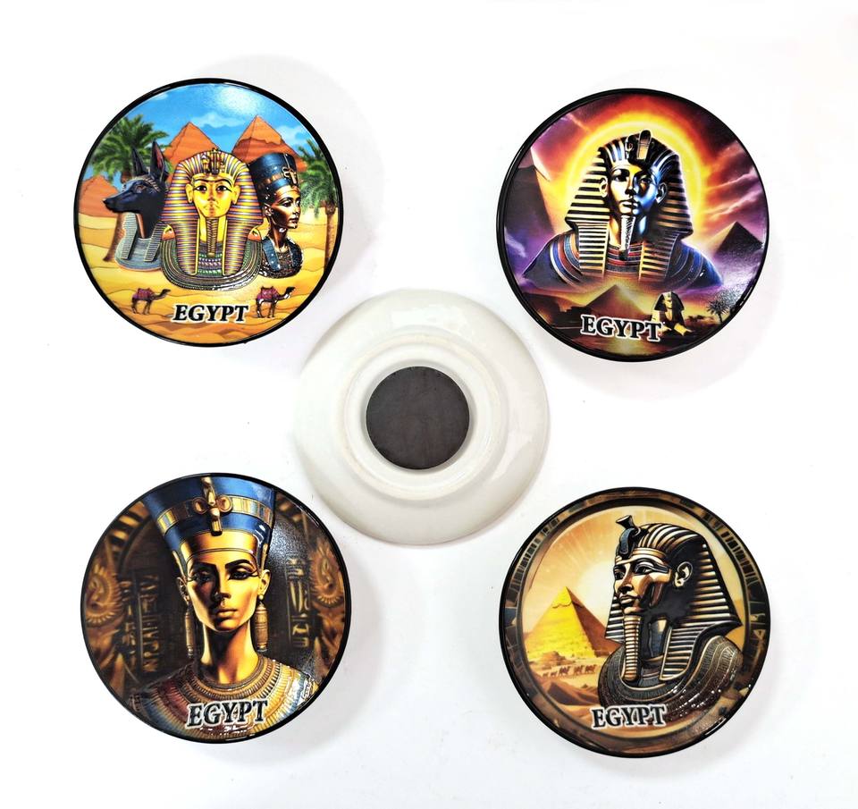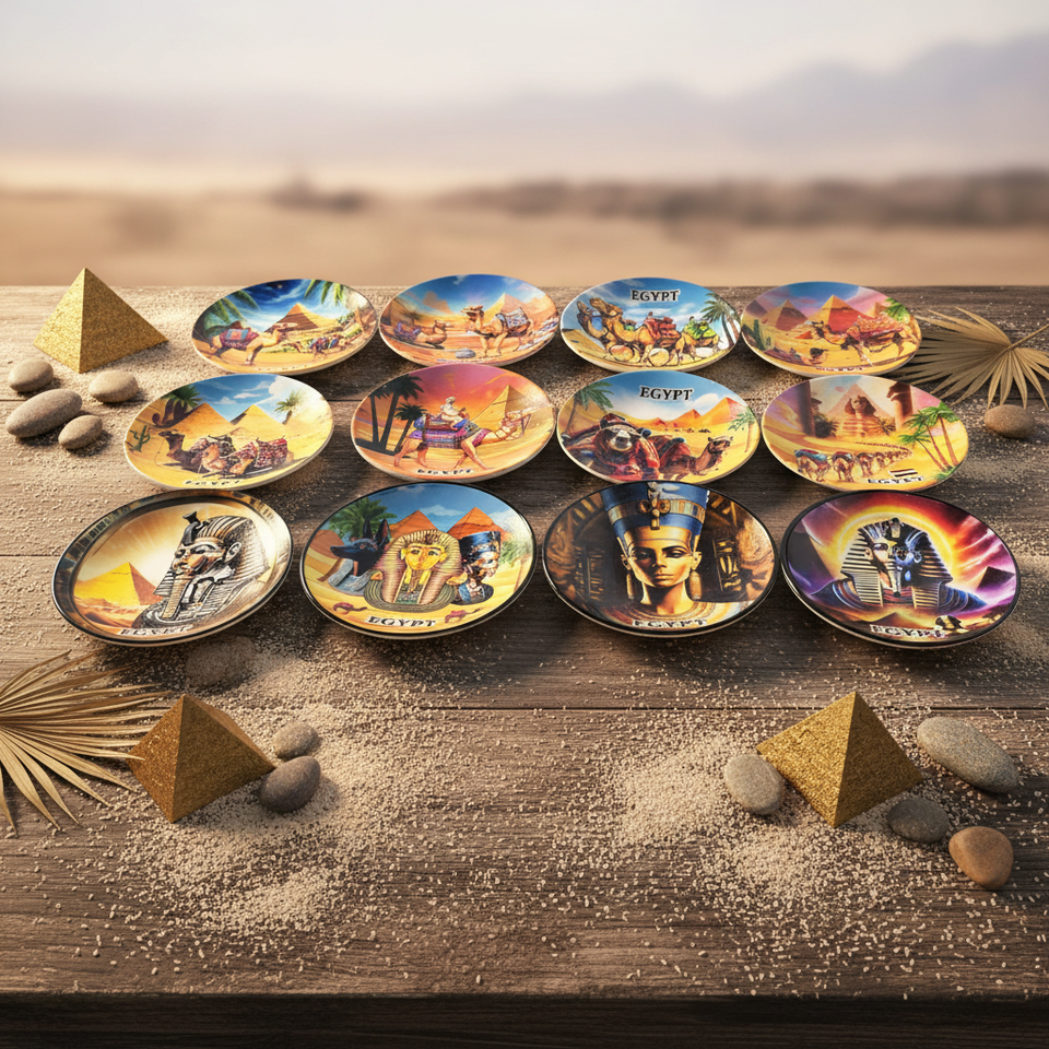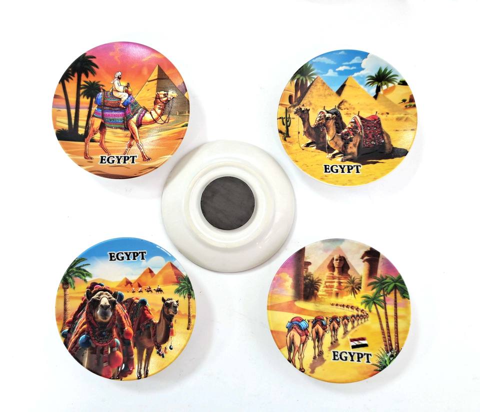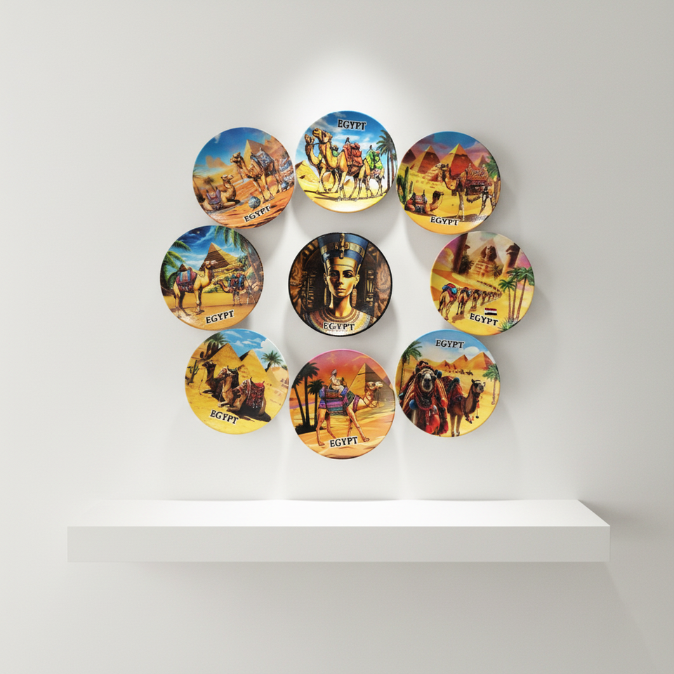 Plato de Cerámica Personalizado con Diseño de Camello, Pirámide y Faraón de Egipto, Estilo Art Deco, Forma Personalizada, Recuerdo Hecho a Mano, Imán para Refrigerador