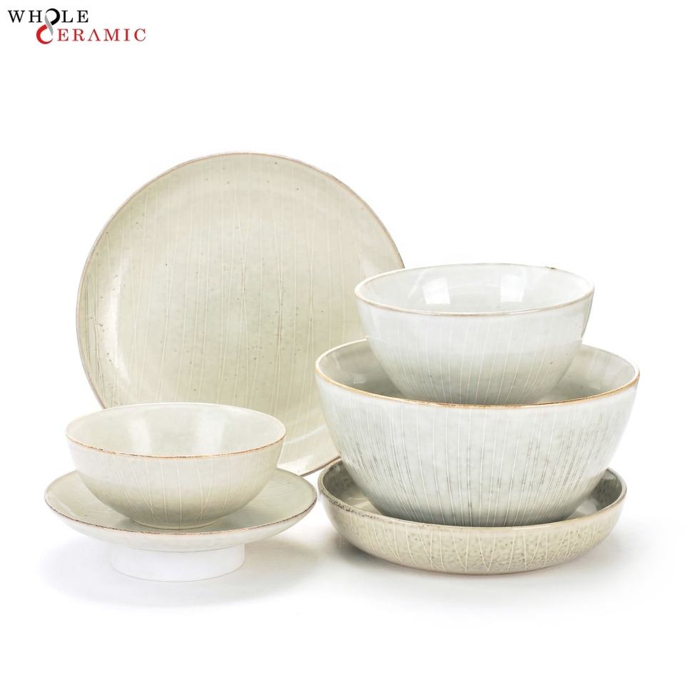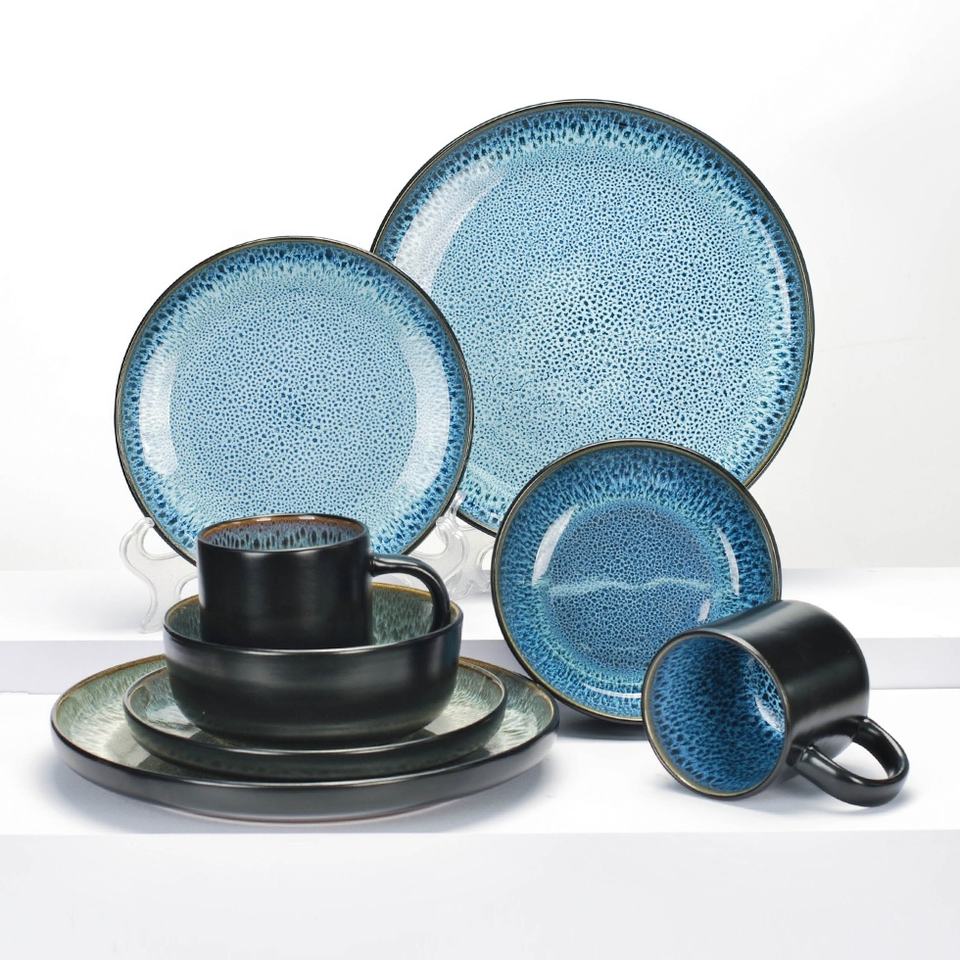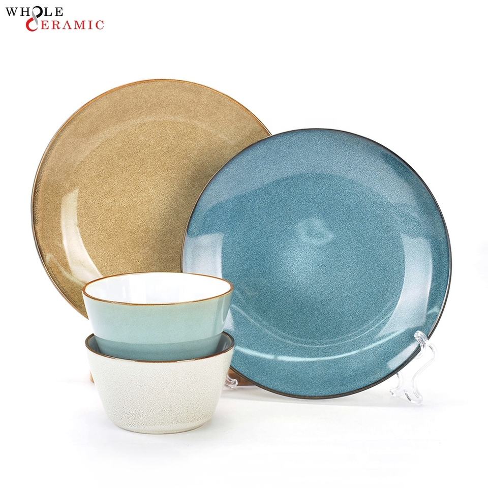 Vajilla personalizada de gres cerámico esmaltada creativa en el interior de dos tonos, juego de vajilla de 8 uds, restaurante en casa usado al por mayor