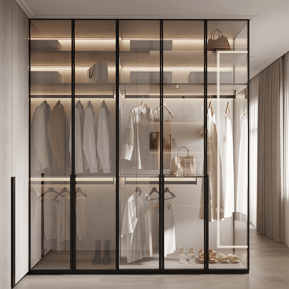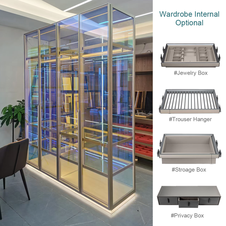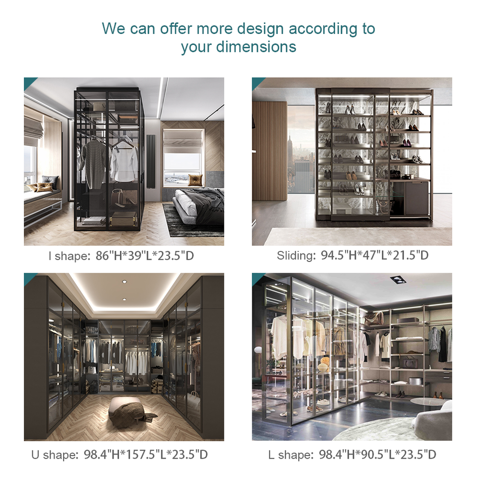 Armario de Aluminio Personalizado, Económico, Minimalista, de Diseño Abierto, con 4 Puertas de Vidrio, para Dormitorio, Escaleras, Villa o Taller