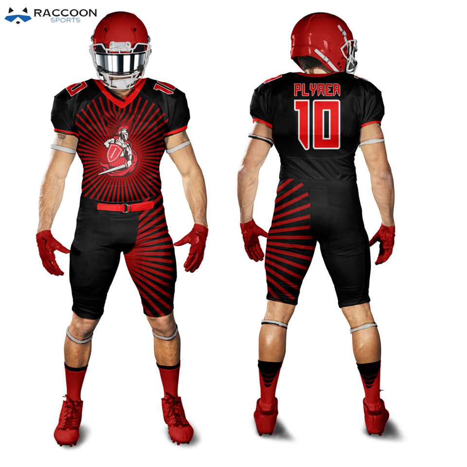 Uniforme de fútbol americano personalizado de alta calidad, hecho en China, el mejor diseño, sublimación, universidad, corto, transpirable, de talla grande