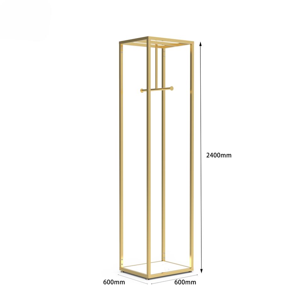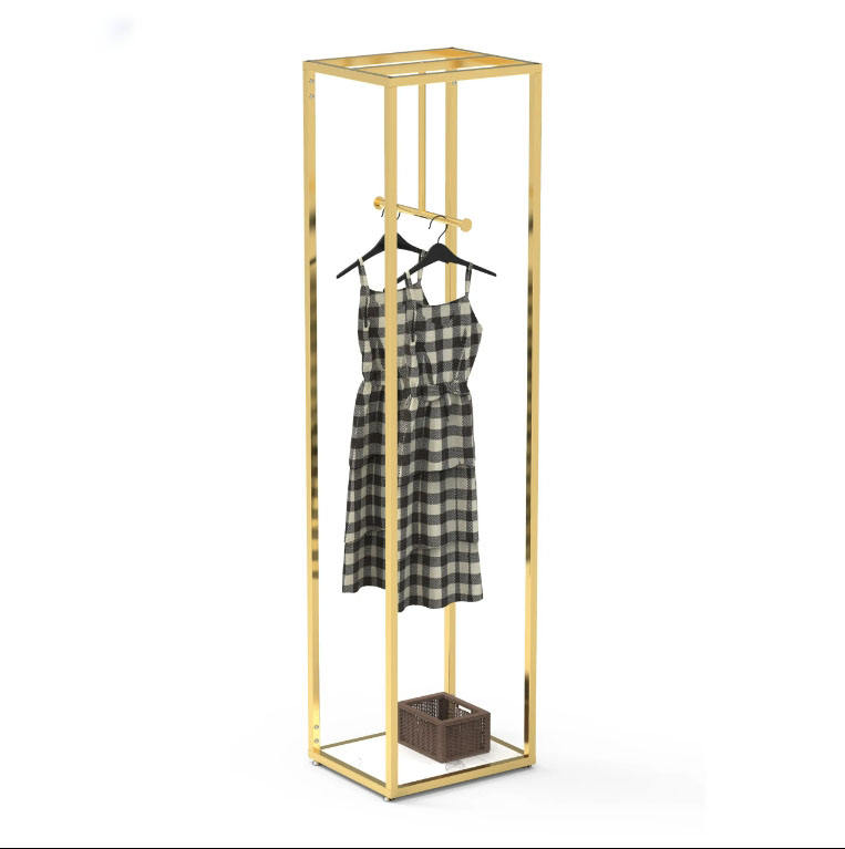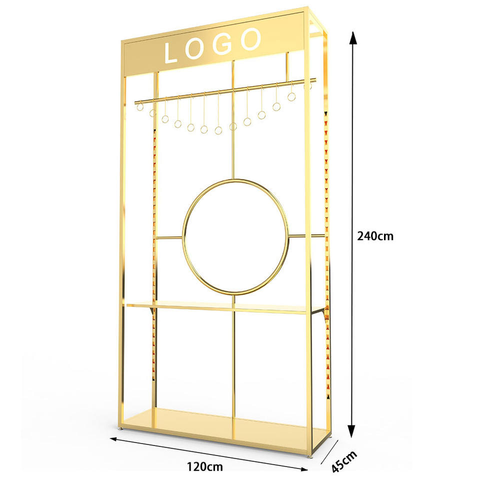 Estante de exhibición de ropa personalizado, estante de exhibición dorado de pie, zapatos de vestir, camisetas, estantes de ropa para tiendas minoristas