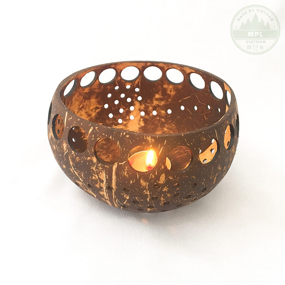 Portavelas de luz de té de cáscara de coco colorido personalizado con logotipo personalizado diseño moderno ecológico para decoración del hogar