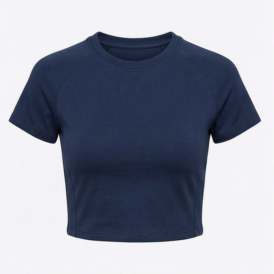Camisetas Cortas Personalizadas en Color, de Algodón y Poliéster, con Manga Raglán, Cuello Redondo, Corte Ajustado, Blusa para Mujer, Ropa de Moda para Gimnasio