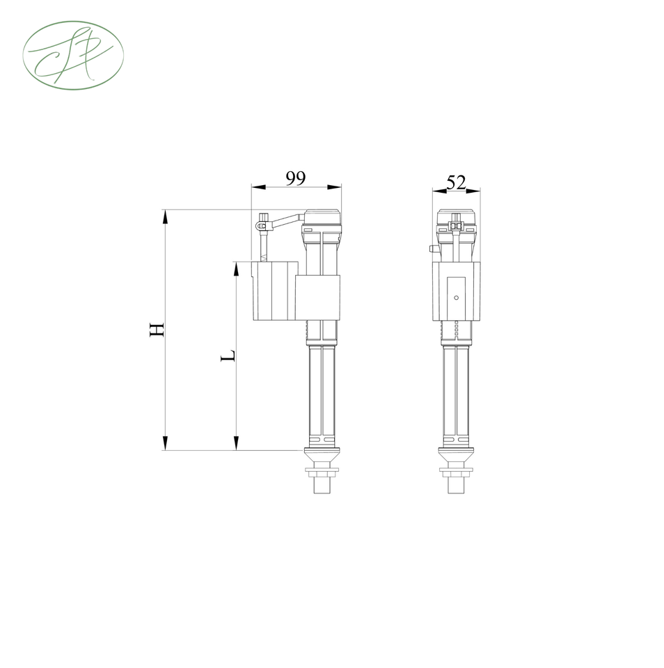 Apartamento, Toilet tank repair parts, Bottom water inlet, needle valve type
